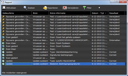 Na een scan is uitgebreide informatie te krijgen over wat er is gevonden en wat er met de malware is gedaan.
