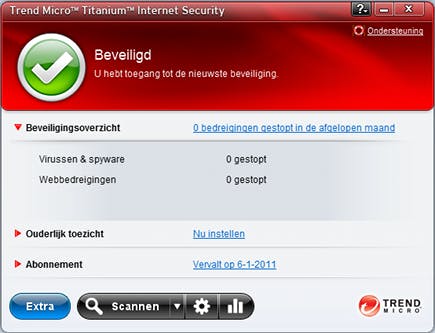 De interface van Trend Micro Internet Security maakt wel erg weinig indruk.