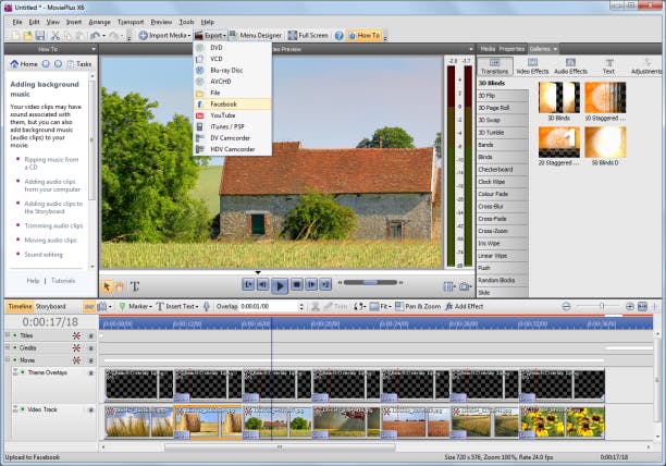 De interface van MoviePlus X6 oogt professioneel. U switcht snel tussen het storyboard en de tijdlijnmodus, en media importeren kan eenvoudig via een grote knop centraal in de werkbalk. In het rechterdeel van het scherm kunt u via Properties eenvoudig de tijdsduur van een fragment aanpassen of de beeldkwaliteit onder handen nemen. Het programma bevat immers flink wat tools om de witbalans, belichting en kleuren te verbeteren. Weet u niet precies hoe u iets moet doen? Dan is de How To-kolom (uiterst links in beeld) handig. Hier kunt u eenvoudig opsnorren hoe u bijvoorbeeld overgangen instelt, foto's roteert of videoclips trimt.