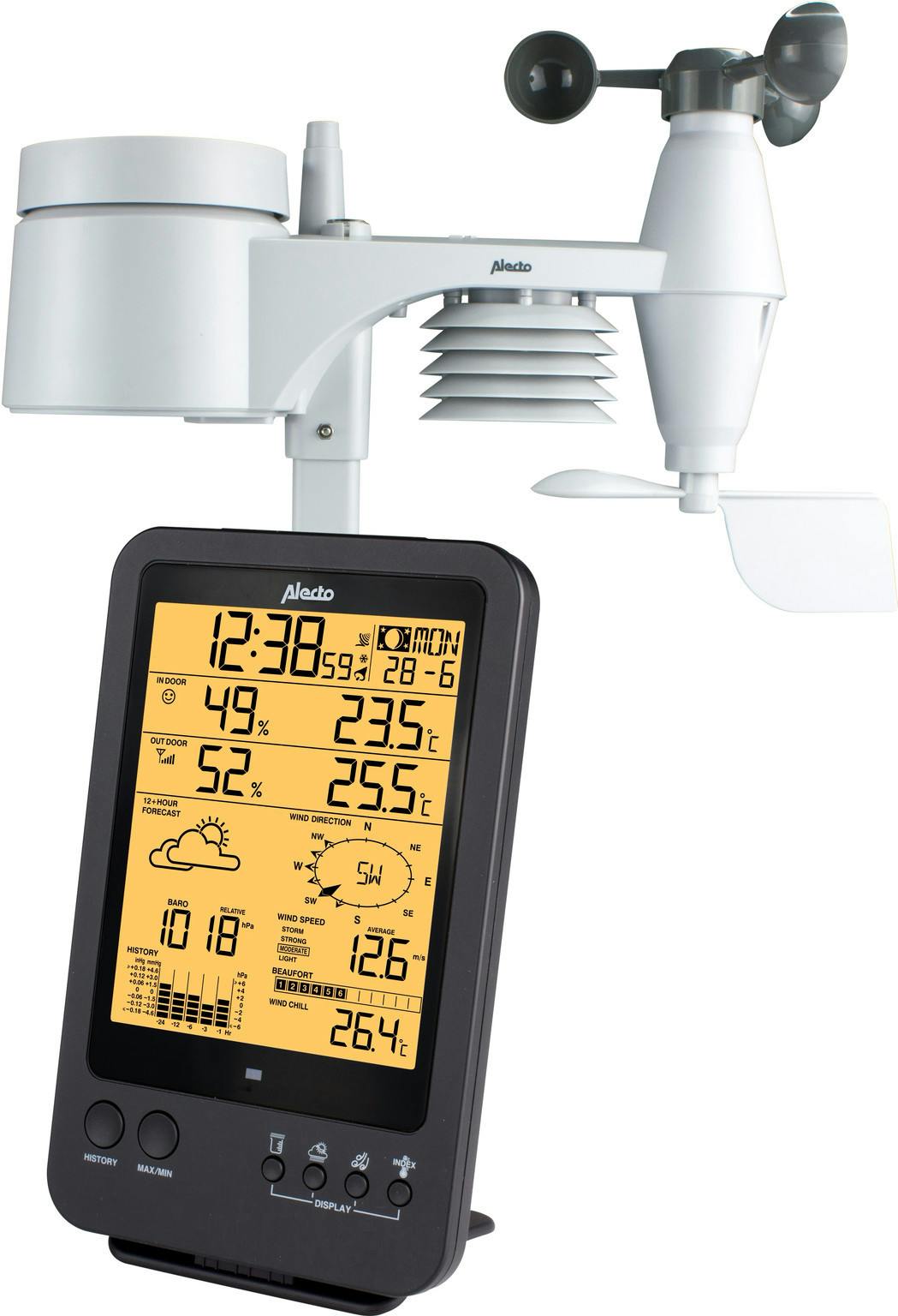 De Alecto WS-4700 hoort bij de goedkopere weerstations, maar kan een hele hoop. Het station dat je buiten bevestigt, communiceert met het basisstation dat je ergens binnen neerzet. Je ziet onder andere de actuele luchtdruk, de windsnelheid, de windrichting en de temperatuur. Ook zaken als de hoeveelheid neerslag en de luchtvochtigheid worden live gemeten. Het Alecto-station is eenvoudig in gebruik: alle informatie staat overzichtelijk op het beeldscherm. Het station werkt op een batterij. Ben je op zoek naar een compleet maar betaalbaar weerstation, dan is dit een goede keuze.