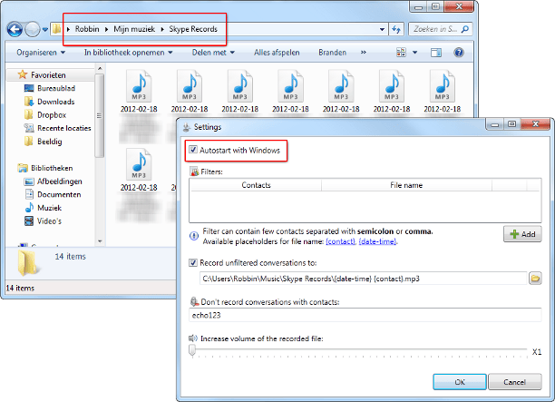 Het handige aan Skype Auto Recorder is dat u het programma slechts één keer hoeft in te stellen en vervolgens gewoon kunt vergeten. Skype Auto Recorder houdt vervolgens Skype in de gaten en neemt uw gesprekken automatisch op in mp3-formaat.