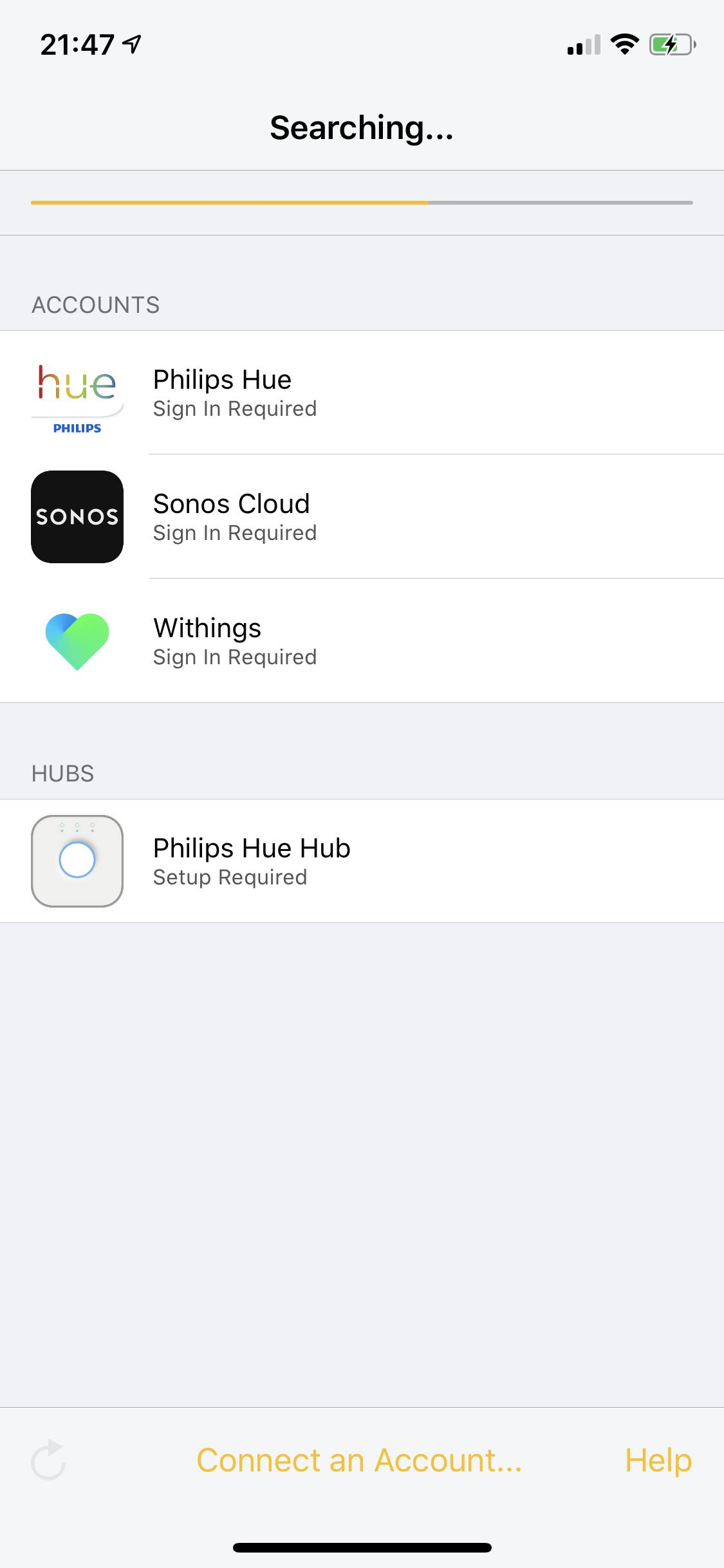 Wanneer je het account hebt gemaakt, wordt het tijd om de slimme apparaten toe te voegen aan de app. We noemden Yonomi al gebruiksvriendelijker dan platformen als IFTTT en Zapier, en dat merk je direct wanneer je aan de slag gaat met de app na het aanmaken van een account. Want waar je bij de andere platformen zelf moet aangeven over welke slimme apparaten je beschikt, biedt Yonomi de optie om deze apparaten zelf voor je op te sporen.