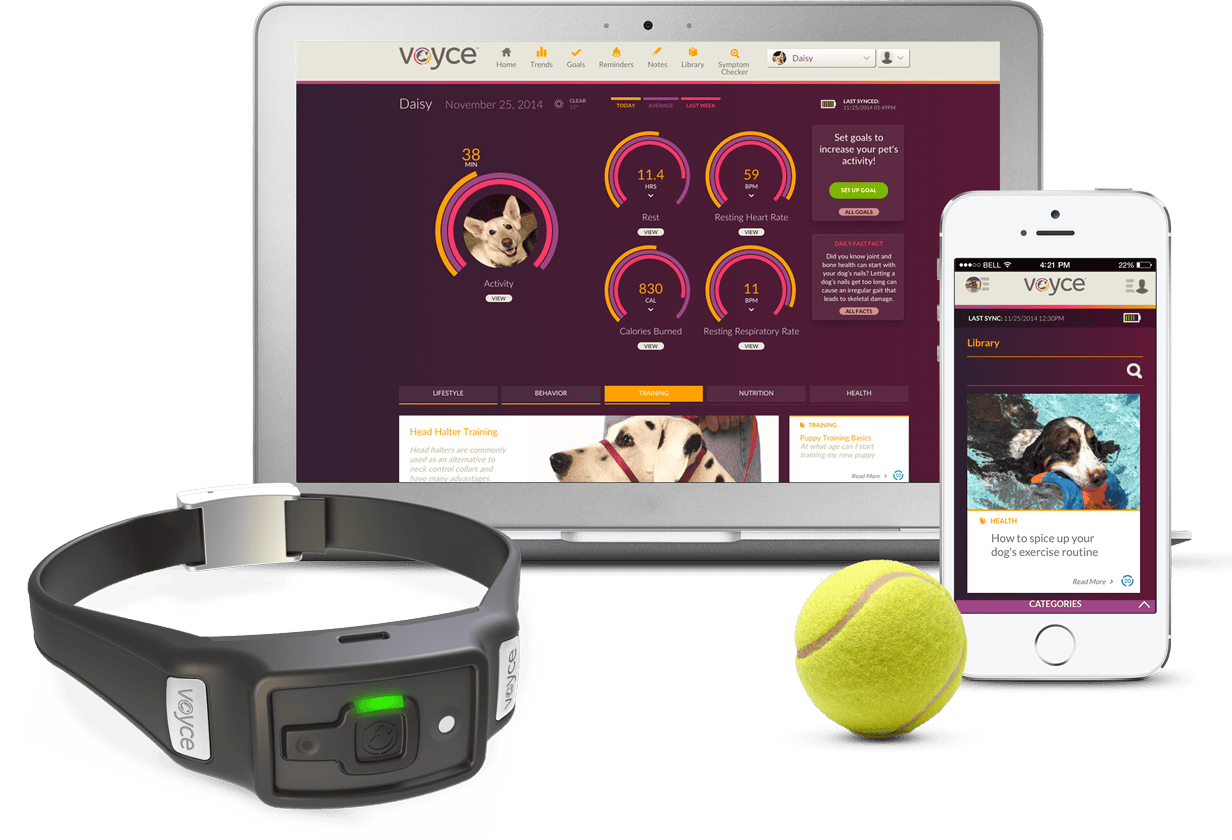 Zo bestudeert de halsband de hartslag van uw hond wanneer deze stil ligt en meet het ademhalingspatroon. Daarnaast houdt de halsband in de gaten hoeveel uw hond beweegt, hoeveel hij of zij rust en hoeveel energie het dier op een dag verbrandt. Wanneer er iets belangrijks wijzigt in de conditie van uw hond kunt u dat met Voyce in een vroeg stadium signaleren. Een bijbehorende app toont daarvan statistieken. En ook op de langere termijn kunt u trends waarnemen. Enigszins prijzig is Voyce wel. Bovendien hoort er ook nog een maandabonnement bij. Dat geeft recht op het ontvangen van tips over het socialiseren en gezond houden van uw hond. Ook kan de app u helpen herinneren aan doelstellingen die u hebt gesteld voor de hond, zoals meer bewegen.