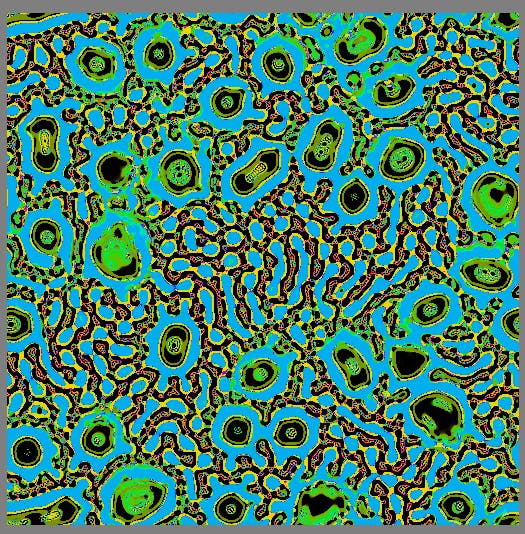 We hebben het op deze plek weleens gehad over Game of Life: een interessant model van hoe grote complexiteit kan voortkomen uit simpele regels. Met het programma Golly (Voor Nop 2015/16) kon u er mee spelen. Minder gebruiksvriendelijk maar tegelijk interessanter is Smoothlife. Dit is een collectie programmaatjes waarin de wereld niet uit blokjes bestaat maar een continuüm is, zoals de echte wereld. Dat leidt tot simulaties die boeiend zijn om naar te kijken en doen denken aan het constant veranderende lichtspel van de bekende lavalamp. Alternatieve parameters geeft u op via een tekstbestandje.