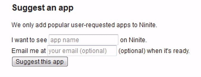 De software die deze multi-installer aanreikt, is erg divers en goedgekozen. Toch zitten er hier en daar ook enkele vreemde keuzes bij, zoals NVDA: een 'screen reader'. Soms vraag je je af waarom het ene programma wel in de lijst voorkomt en het andere niet. De makers houden wel rekening met de verzoeken van de gebruikersgemeenschap. Ninite heeft daarom op de homepage een formulier klaargezet waar gebruikers suggesties kunnen aandragen voor software die aan de lijst toegevoegd zou moeten worden. Als je je e-mailadres hierbij achterlaat, ontvang je een bericht op het moment dat Ninite aan je wens tegemoetgekomen is. Wij hebben de lijst met programma's een tijd in de gaten gehouden en hebben gemerkt dat het aantal titels de afgelopen maanden helaas niet is veranderd.