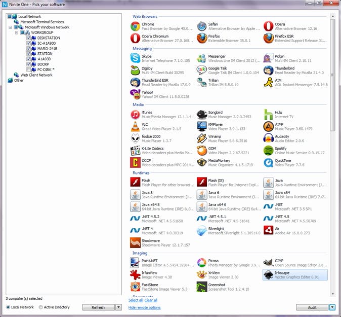 Je kunt de stations met een groep of individueel selecteren om de systemen met hetzelfde gemak van de laatste softwareversies te voorzien. Zo'n netwerkinstallatie spaart enorm veel tijd en bandbreedte omdat de gebruikers niet een voor een de software downloaden en installeren. Bovendien werkt de installer veel sneller omdat Ninite Pro de downloads opslaat in de cache en hergebruikt. De pro-editie is tevens voorzien van Ninite Updater en een functie om een audit uit te voeren op alle verbonden machines. Bovendien is de lijst van apps die Ninite Pro ondersteunt iets langer dan die van de gratis versie: 110 programma's in plaats van 92. Ten slotte is het mogelijk om met de betaalde versie offline-installers samen te stellen die dus ook zonder internetverbinding werken.