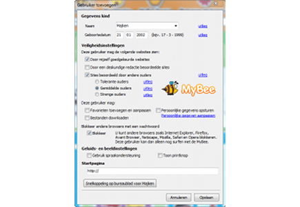 De opties voor ouderlijk toezicht zijn beperkt in MyBee maar omvatten wel webfiltering en het blokkeren van andere browsers.