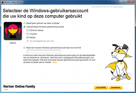 Norton koppelt de regels aan de gebruikersaccounts van Windows en Mac.