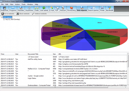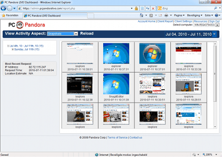 PC Pandora legt werkelijk alles wat er op een computer gebeurt vast in zowel tekst als beeld. Gestarte programma’s, bezochte websites, toetsaanslagen, chatteksten, webcamgebruik, bestanden die via p2p gedeeld worden en nog veel meer: alles is voor de ouders te controleren via de Viewer Application. Deze kan zowel zichtbaar als volledig onzichtbaar voor de gebruikers geïnstalleerd worden, en is in het laatste geval alleen via een geheime toetscombinatie op te roepen. Wilt u niet wachten tot u weer achter de pc zit dan kunt u alle informatie ook naar uw mailadres laten versturen of voor bijna 30 dollar (circa 23,55 euro) per maand de Live-dienst afnemen. Deze laatste biedt via een webportal live inzicht in wat er op de computer gebeurt en kan bovendien op afstand de configuratie aanpassen. PC Pandora is dus vooral ouderlijk toezicht achteraf en het heeft een potentieel hoge impact op de privacy van de kinderen. Het product biedt webfiltering en u kunt bepaalde programma’s en chatprococollen verbieden. Deze onderdelen zijn echter functioneel duidelijk minder uitgebreid dan bij de andere producten. Ook staat PC Pandora maar één profiel toe en kan voor elke computergebruiker alleen worden ingesteld of deze onder het profiel valt of niet. Een timerfunctie voor chat en internet ontbreekt maar wordt volgens Ken Shalcross van PC Pandora in de volgende versie geïntroduceerd.