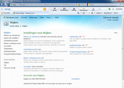 Pagina 5: VISE Oudercontrole; Windows Live Family Safety (bèta 4)