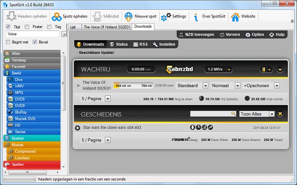 Het downloadprogramma SABnzbd is in SpotGrit geïntegreerd. U bedient het onderdeel in een apart tabblad.