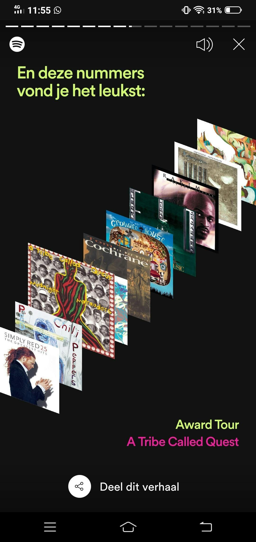 Tussendoor krijg je ook nog een playlist voor je kiezen, die je later ook in de Spotify-app kunt terugvinden.Jouw meest beluisterde nummers van 2019, is een playlist waarin, niet geheel onverwacht, jouw meest beluisterde nummers van 2019 staan. Die playlist neemt je nog even mee naar jouw favoriete nummers van het afgelopen jaar.