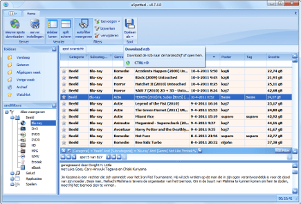 De gebruikersinterface ziet er op grafisch gebied prima uit, maar het is wel jammer dat er geen configuratiewizard is. Het programma maakt gebruik van dezelfde database als Spotnet. U haalt de database op met de gegevens van uw nieuwsserver. Via de knop server instellingen stelt u een nieuwsserver in. Eventueel versleutelt u de verbinding met SSL-encryptie. Het importeren van databasegegevens duurt overigens een stuk langer vergeleken bij Spotnet en SpotLite. Gelukkig maakt de automatische updatefunctie een hoop goed. Aan de linkerkant staan diverse filters, zodat u simpel interessant materiaal vindt. De indeling lijkt erg op die van een e-mailprogramma. Bovenaan staan alle spots van het openstaande filter, terwijl in het onderste deelvenster informatie over de inhoud is te bewonderen. Het is weliswaar mogelijk om zelf filters toe te voegen, maar dat werkt op dit moment nog omslachtig. U opent rechtstreeks nzb-bestanden met uw favoriete usenet-programma. Eventueel bewaart u ze desgewenst ook eerst op uw computer. Handig is verder dat u spots in een 'watchlist' plaatst. Het programma heeft zeker potentie, maar er zijn op een aantal punten wel verbeteringen noodzakelijk. Bovendien is een geïntegreerde downloadclient gewenst. Pas wanneer een dergelijke functie wordt toegevoegd, is µSpotted klaar voor de concurrentie met Spotnet.