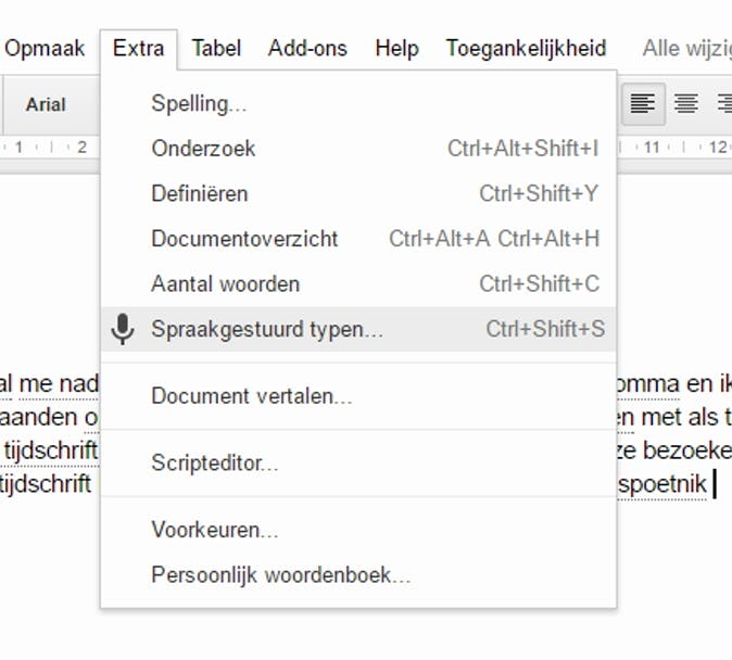 De mobiele versie van spraakgestuurd typen in Google Docs werkt in het Nederlands accurater dan de versie voor de computer.