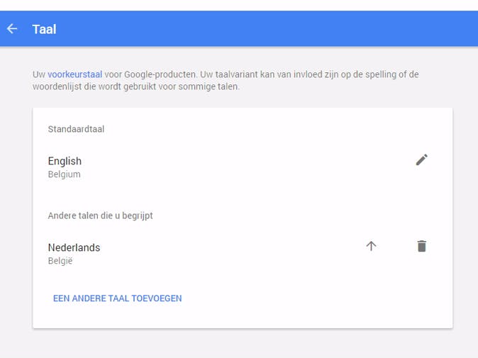 Werk je met Engelse tekst, dan lukt het wel om selecties te maken en spraakopdrachten te geven. Opdrachten als 'select all', 'select next', 'select last character', 'select (woord)' begrijpt de spraakbesturing van Google wel. Hiervoor moet je niet alleen 'het microfoontje' op Engels instellen, je moet bovendien de taal van je persoonlijke Google-account in Engels wijzigen. Hiervoor klik je rechtsboven op de naam van je profiel en daar selecteer je Mijn account. In het volgende venster zie je onder de kop Accountvoorkeuren de knop Taal en invoertools. Klik daarop, vervolgens stel je de standaard taal in op Engels. Pas nadat je die twee instellingen (spreektaal bij de microfoon en accounttaal in de voorkeuren) hebt aangepast, merk je hoe krachtig deze online toepassing werkelijk is.