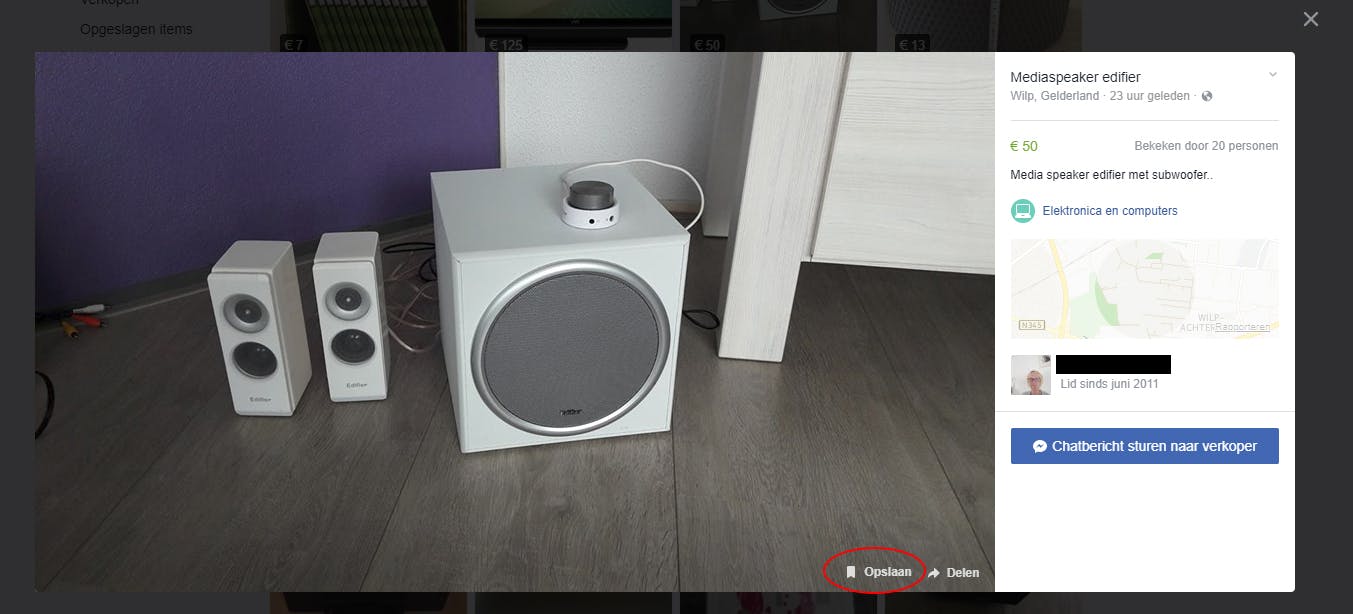Twijfel je nog, bewaar de advertentie dan voor later door op Opslaan te drukken. Deze blijft dan bewaard onder Opgeslagen items. Je kunt hier de advertentie trouwens ook delen met je vrienden.