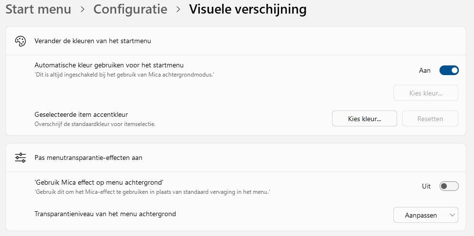 Pas de instellingen van het startmenu tot in detail aan.