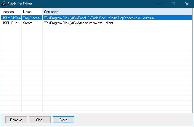 Via de knoppenbalk kun je vier acties uitvoeren op een geselecteerd item. Je kunt het (geforceerd) uitvoeren, maar ook uit de lijst verwijderen. Daardoor zou de toepassing normaal gesproken niet meer automatisch opstarten. Verder kun je een item aan een whitelist of blacklist toevoegen. Helaas vind je zo goed als geen toelichting bij deze lijsten. Een blacklist is handig als je meer zekerheid wilt dat een hardnekkige app ook tijdens een van de volgende Windows-sessies niet meer wordt opgestart. Apps daarentegen die je wel vertrouwt, kun je aan de whitelist toevoegen, hoewel het niet helemaal duidelijk is wat er dan onderhuids precies gebeurt. Vanuit het menu kun je op elk moment beide lijsten opvragen en aanpassen. Tot slot kun je een item vanuit het contextmenu als zoekterm naar de zoekmachine van Google sturen.