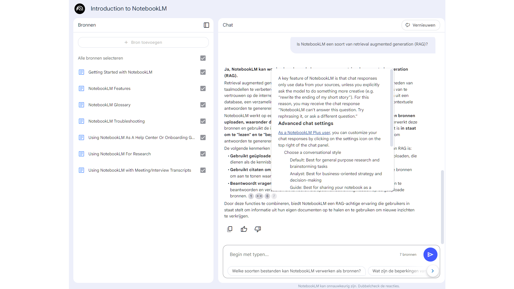 Desnoods haalt NotebookLM aanvullende informatie uit de eigen trainingsdata op.