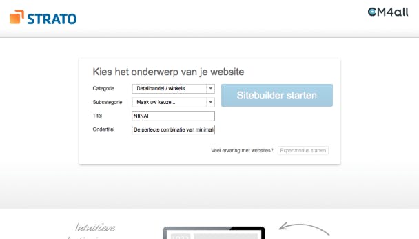 Strato Sitebuilder ------------------ **Prijs**: € 8,- per maand **Taal**: Nederlands **OS**: N.v.t. **Website**: [www.strato.nl/sitebuilder](http://www.strato.nl/sitebuilder)