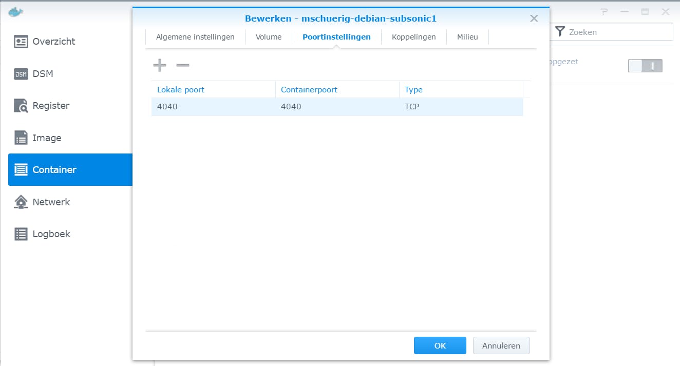 Om Subsonic op je Synology-nas op te zetten, ga je naar Package Center en zoek je naar Docker. Klik op Installeren en open na de installatie Docker vanuit het menu. Ga naar Register en voer bovenaan in het zoekvak mschuerig/debian-subsonic in. Klik op het enige resultaat en kies voor Downloaden. Klik op Starten / Geavanceerde instellingen. Ga naar het tabblad Volume en klik op Map toevoegen en selecteer de map met je muziek. Klik op Selecteren. Vul dan bij Pad koppelen het pad /var/music in. Ga dan nog even naar het tabblad Poortinstellingen en klik op Automatisch bij Lokale poort. Typ daar 4040. Klik op OK en klik op Volgende / Toepassen. Je kunt nu Subsonic bezoeken door in de adresbalk http://synology-ip-adres:4040 te typen.