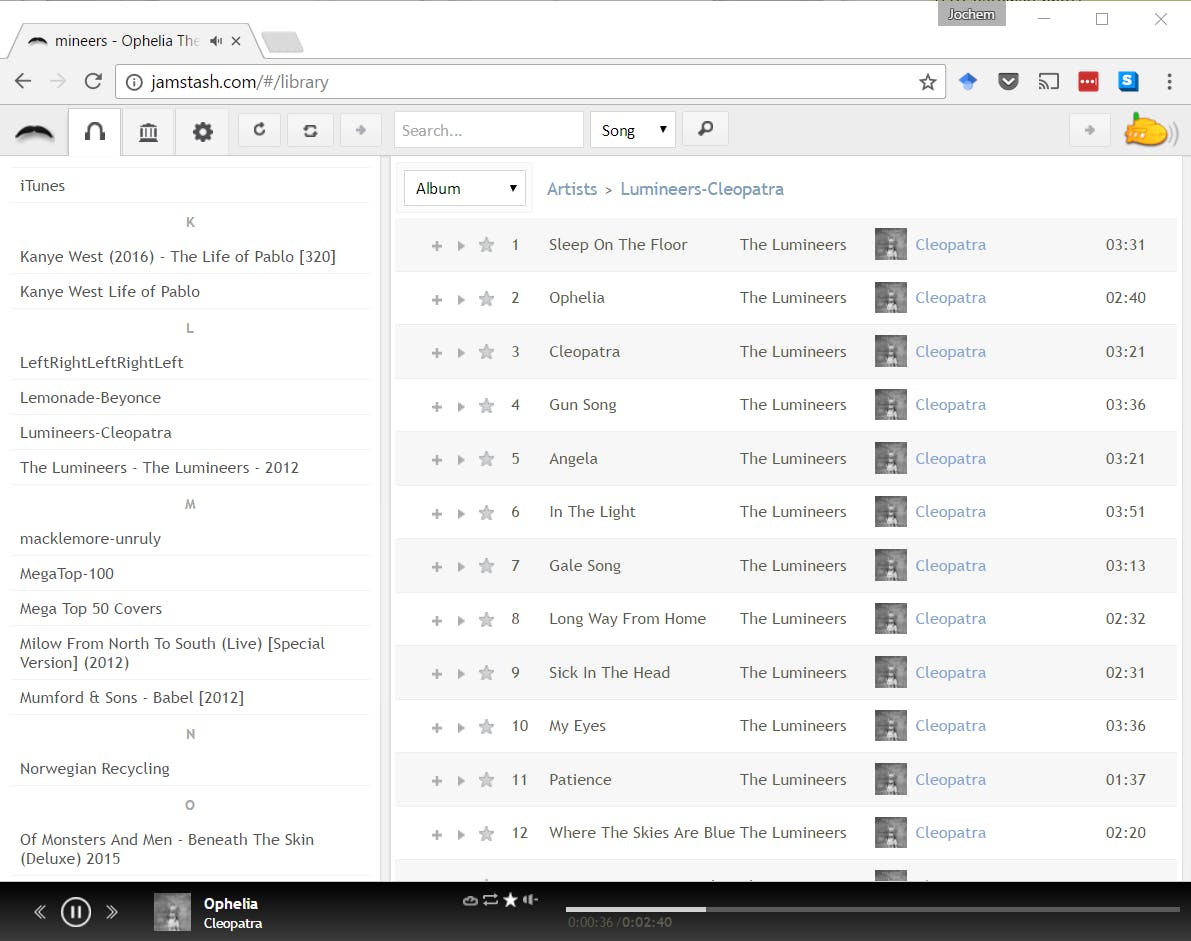 Om eenvoudig bij je server te kunnen, ga je bijvoorbeeld naar jamstash.com. Dat is een html5-app die offline werkt. Je kunt daar bij Username en Password de gebruikersnaam en het wachtwoord invullen van je Subsonic-serveraccount. Vul bij Server de volgende url in: http://[externe-ip-adres]:4040. Klik onderaan op Save. Ga dan naar de koptelefoon bovenaan en tik op de vernieuwknop met de twee pijltjes.