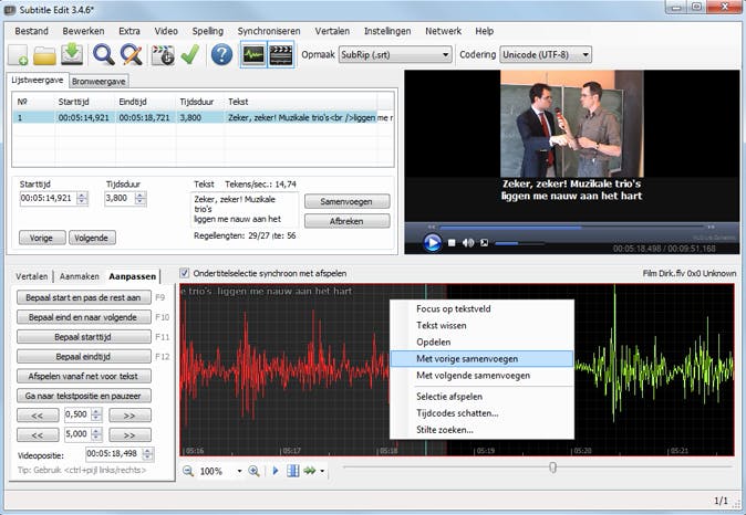 Zowat het enige dat Subtitle Edit niet kan, is ondertitels (hardcoded of embedded) aan de videobeelden vastmaken.