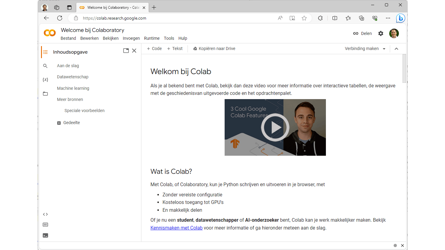Je kunt voor weinig geld cpu-kracht in de cloud huren. Voor gpu-kracht betaal je vaak veel meer. Google Colab biedt het allemaal voor niks. In feite is Colab, voluit ‘Colaboratory’, een Python-omgeving in de cloud. Je kunt de omgeving gewoon via een browser benaderen met een gratis Google-account. Door de opmars van grafisch intensieve AI-toepassingen, vaak met Python als basis, is het platform van Google flink in trek. Dat maakt het wat onzeker of deze dienst kan blijven bestaan en gratis blijft. Maar dat geldt voor veel experimentele diensten van de techgigant. Daarom laten we verderop in dit artikel, vanaf stap 10, ook zien hoe je lokaal op je eigen pc kunt werken met Whisper, voor als de stekker eruit gaat.