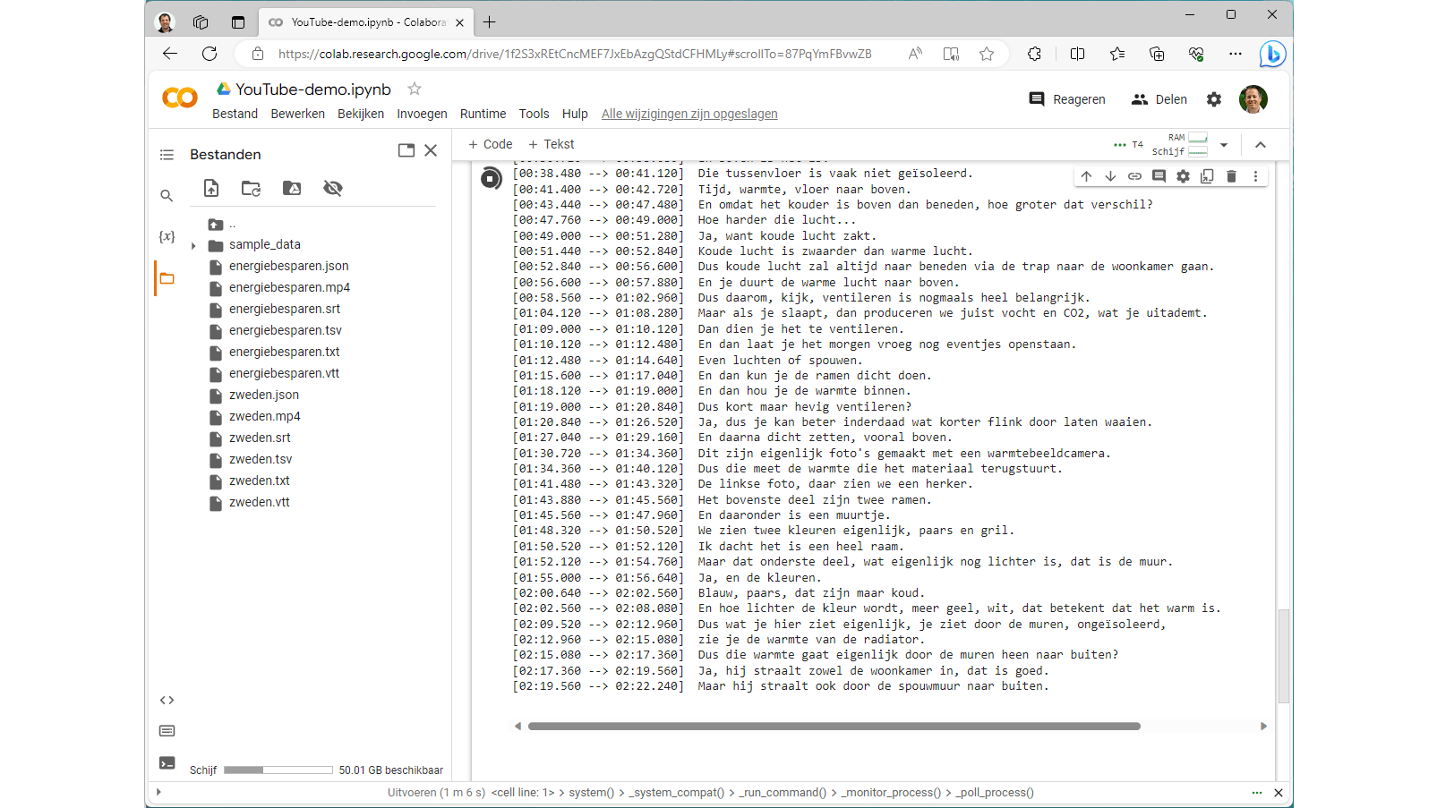 De opdrachten voor het maken van de transcriptie verschillen niet van de eerdergenoemde opdrachten in Google Colab: