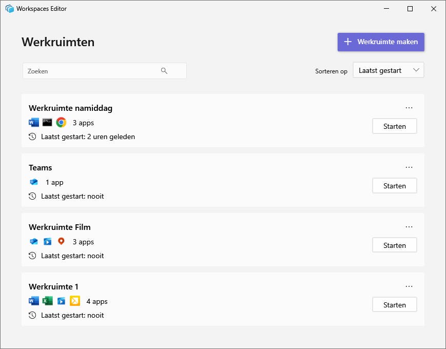 Je kunt zoveel werkruimten opslaan als je wilt.