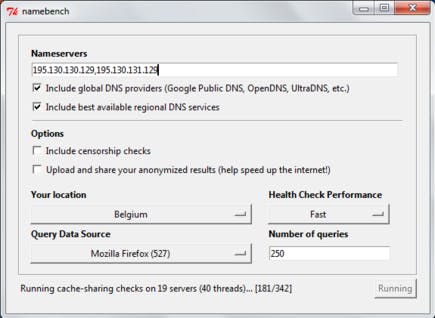 Dat kunt u zelf testen. Het programma Namebench (dat bestaat voor Windows, Mac OS X en Linux) test uw huidig ingestelde dns-servers en vraagt u om ook de ip-adressen van andere te testen dns-servers in te geven. Bovendien kunt u met één checkbox ook vragen om een heleboel globale dns-providers mee te nemen in de test en een andere checkbox doet hetzelfde voor de snelste regionale dns-servers in uw buurt. De test is overigens heel grondig: Namebench vraagt bijvoorbeeld de ip-adressen op van de websites in uw browsergeschiedenis (het herkent verschillende browsers), wat de resultaten heel relevant maakt voor uw specifieke situatie.