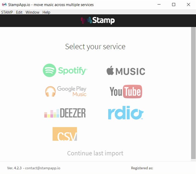 Als je wilt overstappen van Spotify en Apple Music, dan is de beste optie hiervoor een programma genaamd Stamp. Helaas heeft de gratis versie hiervan wel stevige beperkingen, zo kun je alleen 10 nummers en één afspeellijst per sessie van de ene naar de andere dienst overzetten. Als je alles wilt converteren, is het nodig om eenmalig zeven euro neer te leggen. Het enige alternatief is het programma 'Move to Apple Music', maar die software ondersteunt minder diensten en is er alleen voor OS X. Stamp ondersteunt naast Spotify en Apple Music ook Google Play Music als dienst om naartoe te importeren. Het kan bovendien muziek importeren van YouTube en Deezer. Als je naar Apple Music exporteert, zorg er dan voor dat je iTunes hebt geïnstalleerd op je pc en bent ingelogd op het account dat geabonneerd is op Apple Music.