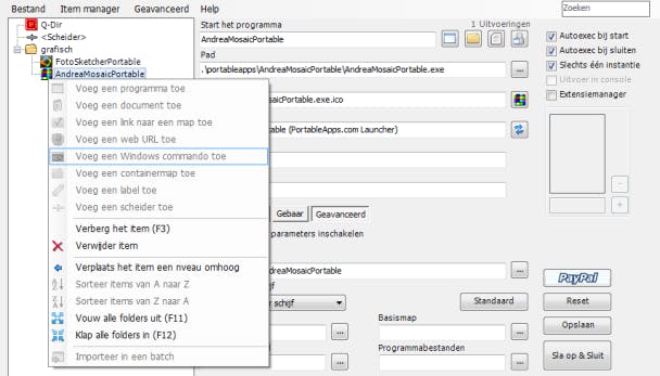 Om dit menu wat overzichtelijk te houden, kun je scheidingslijnen tussen de items voorzien en alles in submenu's onderbrengen. Het is tevens mogelijk een app automatisch samen met Symenu te laten opstarten. Een beetje vreemd is wel dat je deze functie dan ook eerst dient te activeren via Configuratie / Opties.