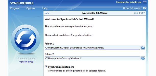 Van Synchredible bestaat ook een betaalde versie (25 euro), maar het enige verschil is dat je daarmee recht op ondersteuning en commercieel gebruik hebt. Voor thuisgebruik kan je dus perfect aan de slag met de gratis variant.