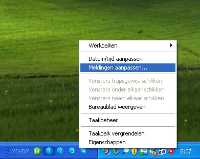 Taakbalk opties aanpassen