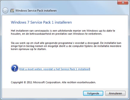 Windows Update zet het Service Pack 1 voor Windows al klaar.