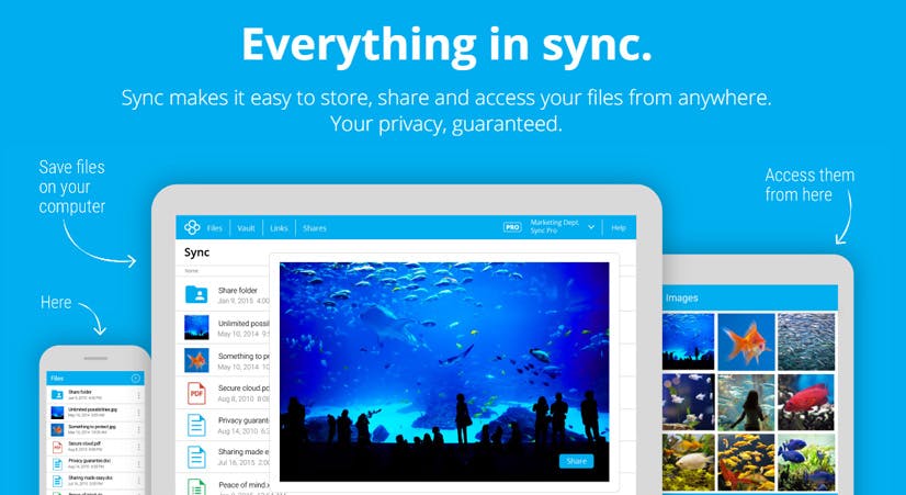 Ook dit bedrijf staat (maar net) buiten de Verenigde Staten: in Canada. De desktopsoftware is grotendeels vergelijkbaar met Dropbox: je kunt een map op je pc kiezen die met de cloud wordt gesynchroniseerd. Wat encryptie betreft gaat Sync een flinke stap verder: bestanden worden al op je pc, dus voor de overdracht, versleuteld. Het bedrijf zegt op geen enkel moment toegang tot je bestanden te hebben. Het is voor jezelf wel oppassen: als je het wachtwoord kwijtraakt kun je zelf ook niet meer bij de bestanden.