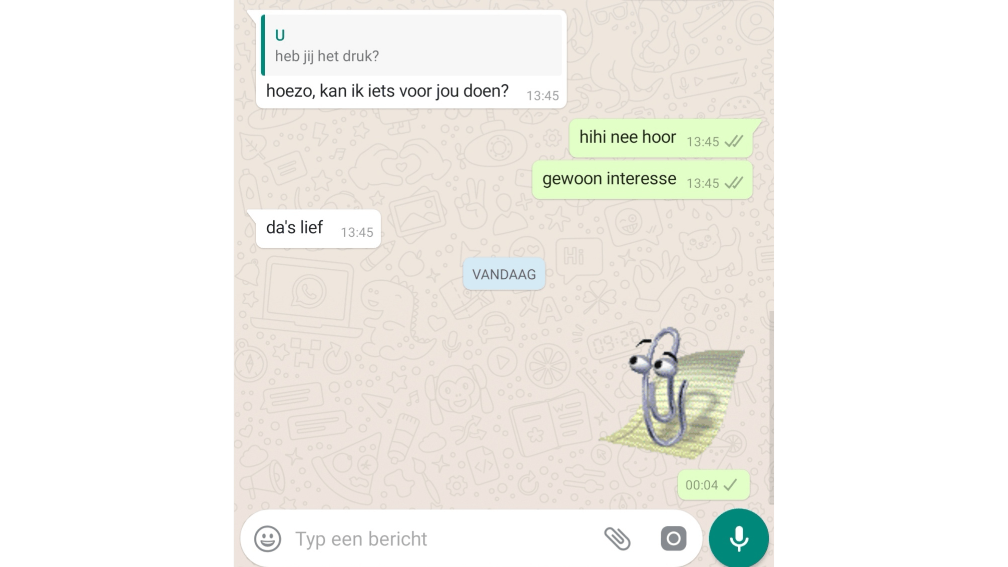Als je Word gebruikte in de nineties of de zero's, dan ken je hem waarschijnlijk wel. Clippy was de hevig geanimeerde paperclip die je (soms hinderlijke) tips gaf over hoe je het tekstverwerkingsprogramma van Microsoft het beste kon gebruiken. In dit pack zitten een paar goede antwoord-stickers, zoals een verbaasde Clippy, een vinkje, een heel nerdy Clippy en een onzekere Clippy. Al zien we hem natuurlijk het liefst hoe we hem vooral kennen: je vriendelijk aankijkend met zijn dopoogjes.