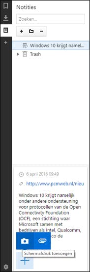 Notities zijn verder nog van screenshots en bijlagen te voorzien. Ook de link naar de website waar de tekst vandaan komt, wordt opgeslagen. De aantekeningen die je hebt gemaakt, zijn tevens in te delen in mappen.