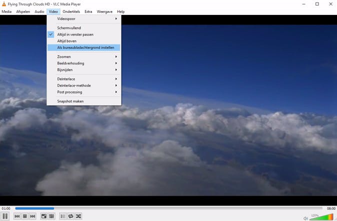 In Windows kun je foto's als bureaubladachtergrond instellen, maar wist je dat dit ook een videobestand of YouTube-filmpje mag zijn? Speel het filmpje dat je op je bureaublad wilt zien af met VLC en kies in het menu Video voor Als bureaubladachtergrond instellen. Een film kijken op deze manier is niet zo fijn vanwege de icoontjes en vensters die het zicht belemmeren. De optie is wel leuk om een (live) video van je favoriete uitzicht weer te geven.
