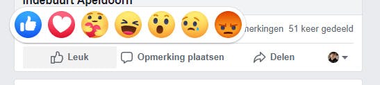 Medeleven wordt uitgebeeld door een figuurtje dat een hart knuffelt. Op de pc selecteer je deze door onder een post met je cursor op de Leuk-knop te rusten zonder direct te klikken. Er opent een menuutje met alle reacties, waaronder de nieuwste aanwinst. In de Facebook-app tik je op de Leuk-knop maar houd je deze even vast tot het menu tevoorschijn komt.