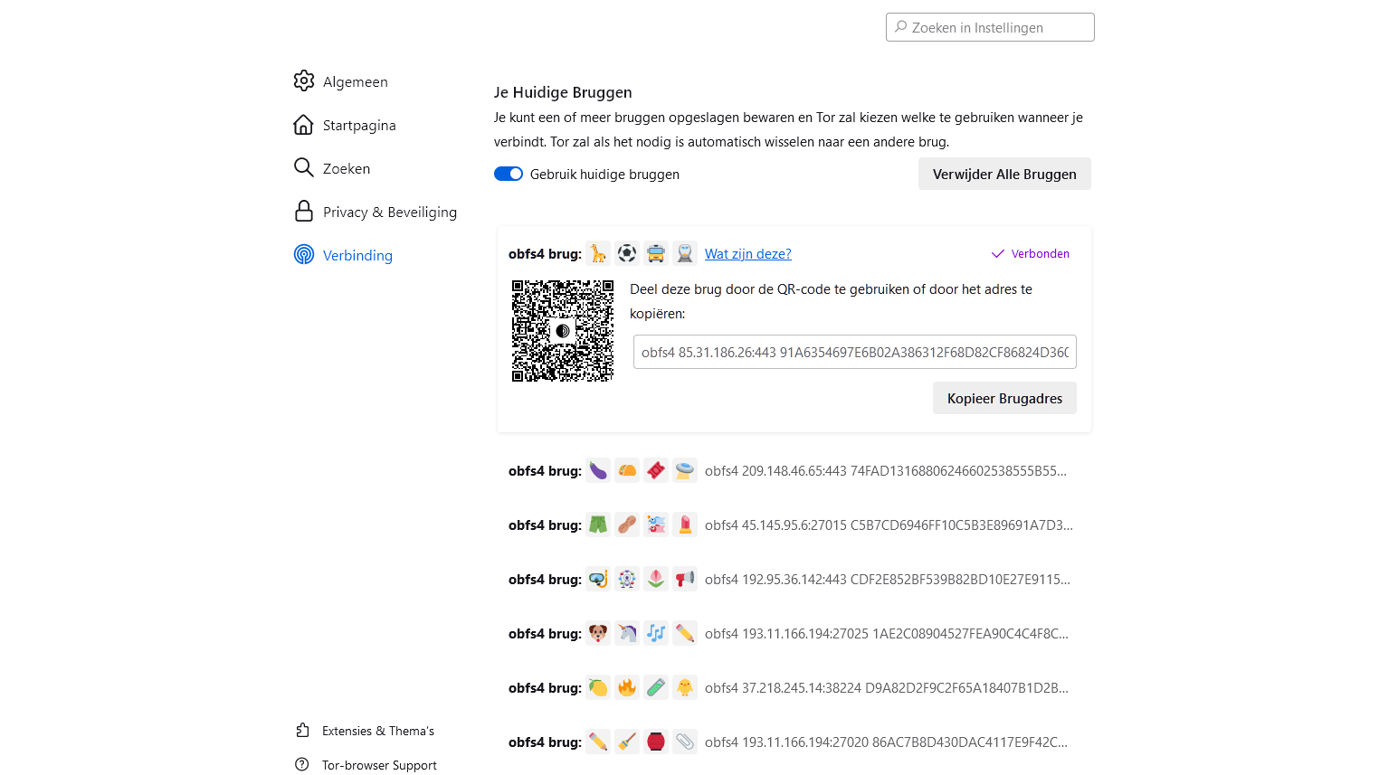 - Verbinden via een Tor-brug