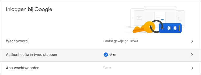 Je beschikt nu over twee Gmail-accounts. Echter, om berichten van je eerste account over te kunnen zetten naar je tweede account blijkt er weinig anders op te zitten dan het eerste account met 2-staps authenticatie te beveiligen. Is dat reeds het geval, dan kunt deze stap overslaan.