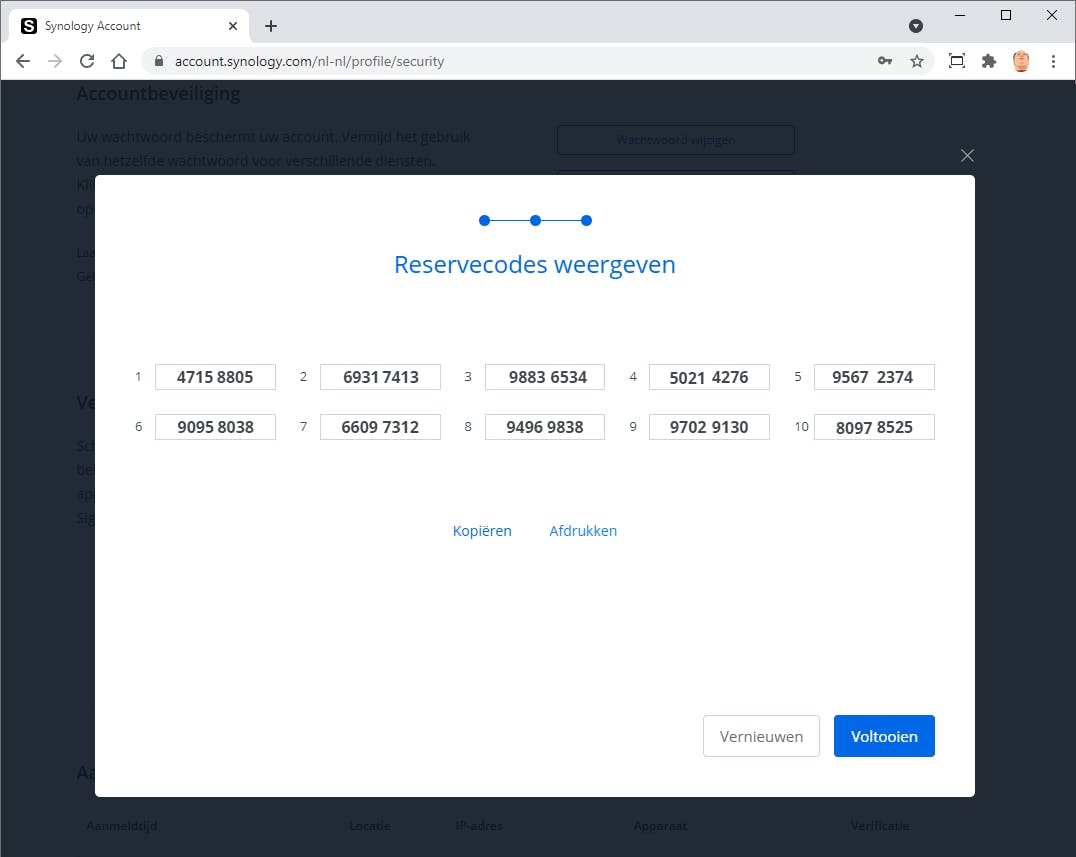 Download de bijbehorende noodcodes en sla ze veilig op!