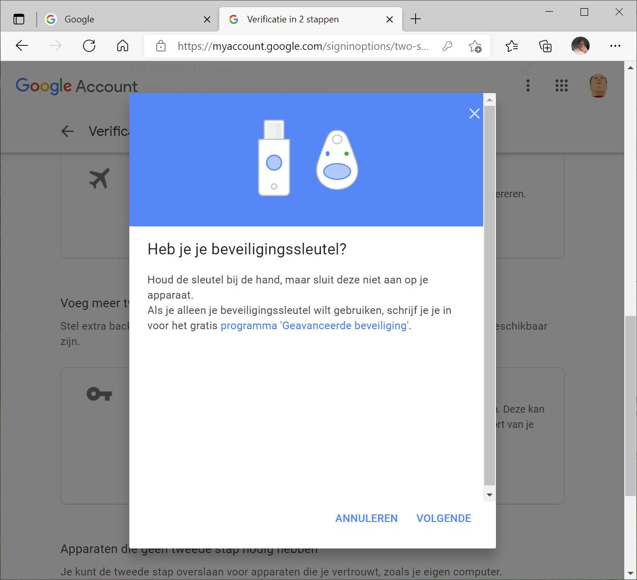 Opnieuw is het verstandig de noodcodes te bewaren. Ook kun je meerdere sleutels registreren bij dezelfde dienst. Dit is wel arbeidsintensief omdat je dan dus telkens niet één, maar bijvoorbeeld twee of drie sleutels moet koppelen, maar het maakt het wel veiliger. Een andere optie is dat je ook de verificatie via smartphone en app of sms/e-mail in stand houdt. Door die alleen in noodgevallen te gebruiken, wordt het allemaal al een stuk veiliger.