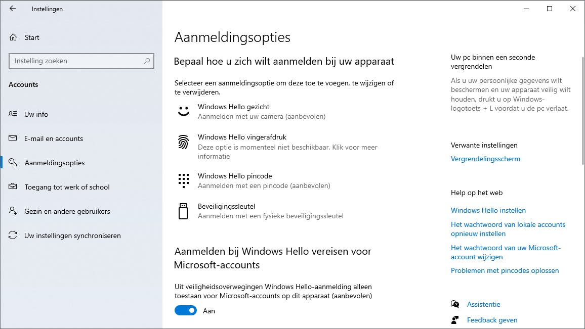 Nadelen zijn er ook. Zo is specifieke hard- en software nodig om een biometrisch persoonskenmerk te scannen. Windows 10 biedt met Windows Hello standaard ondersteuning voor biometrische authenticatie, maar een vingerafdrukscanner of webcam die geschikt is om een gezichtsscan te kunnen uitvoeren, is verre van standaard.