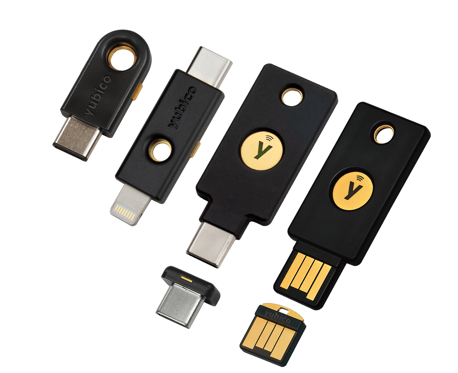 Google en Thetis verkopen zulke hardwarematige beveiligingssleutels, maar het meest bekend is de Yubikey van Yubico. De Yubikey 5 is de nieuwste versie en beschikbaar in verschillende uitvoeringen. Functioneel zijn al deze modellen identiek, het verschil zit hem in de mogelijkheid van verbinden met een pc (usb-a/c) of smartphone (usb-c/lightning/NFC).