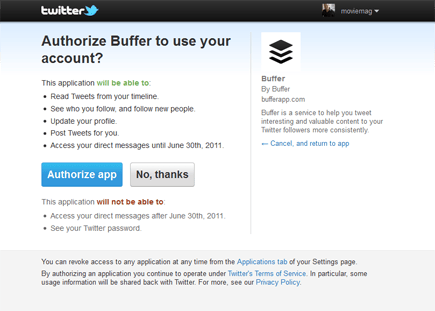 U dient eerst een account aan te maken bij Buffer en vervolgens uw Twitter-account daaraan te koppelen.