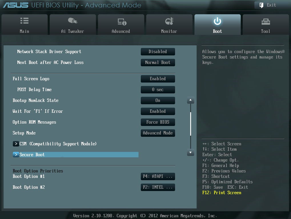 Secure boot uitschakelen