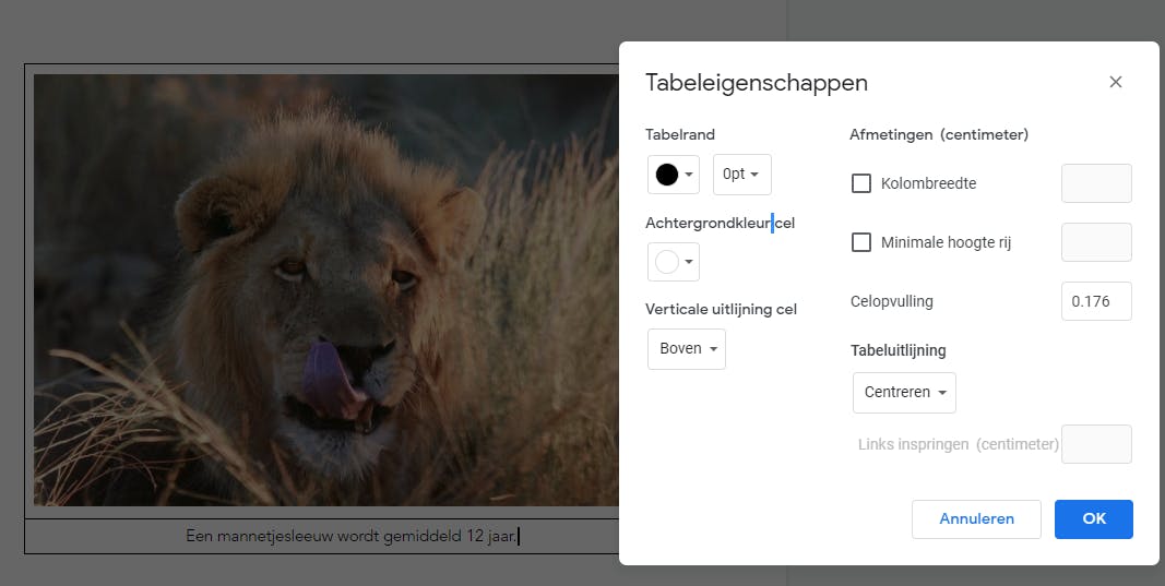 Uitleg bij afbeeldingen en tabellen in Google Docs